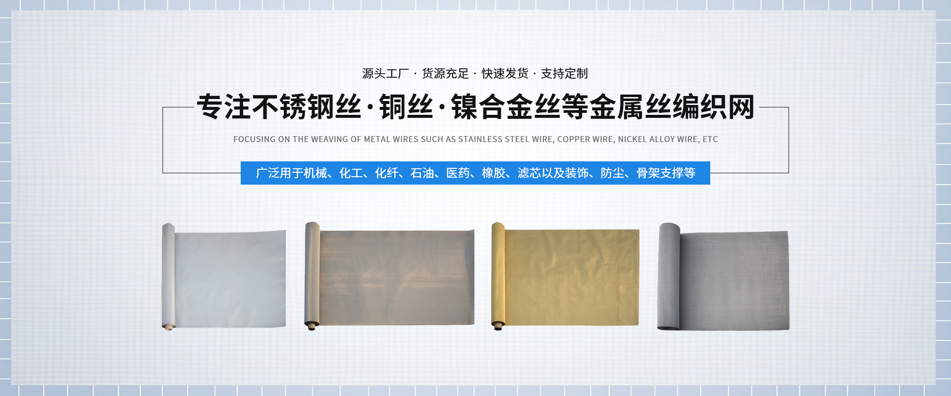 新鄉(xiāng)市中南金屬網(wǎng)有限公司成立于1999 年,公司設(shè)在河南省新鄉(xiāng)市。在過去的十幾年來,我們堅(jiān)持以嚴(yán)格的管理措施、雄厚的技術(shù)力量、良好的工藝設(shè)施,質(zhì)量上乘、信譽(yù)為上為原則,把樹立良好的企業(yè)形象為工作宗旨,歷經(jīng)市場的嚴(yán)峻考驗(yàn)并贏得廣大用戶的一致好評。金屬絲網(wǎng)編織結(jié)構(gòu)形式有平紋和斜紋兩種方法,嚴(yán)格按照航空軍品標(biāo)準(zhǔn)HB1862—93和標(biāo)準(zhǔn)GB/T5330—2003標(biāo)準(zhǔn),并等效采用國際標(biāo)準(zhǔn)ISO9044—90標(biāo)準(zhǔn)組織生產(chǎn)。 公司擁有生產(chǎn)設(shè)備和技術(shù)人員,主要生產(chǎn)不銹鋼篩網(wǎng)、磨料網(wǎng)、金屬絲編織方孔網(wǎng)、篩網(wǎng)、濾網(wǎng) 、篩分網(wǎng) 、過濾網(wǎng)、不銹鋼網(wǎng)、絲網(wǎng)、金屬絲網(wǎng)、金屬絲編織密紋網(wǎng)、特種網(wǎng)、不銹鋼密紋網(wǎng)、荷蘭網(wǎng)、席型網(wǎng)。絲網(wǎng)材質(zhì)選用黃銅、錫青銅、不銹鋼、純鎳等。席型網(wǎng)規(guī)格7/44目—500/3500目,方孔網(wǎng)規(guī)格1/2目—500目,網(wǎng)孔25mm—0.028mm,產(chǎn)品廣泛用于機(jī)械、化工、化纖、石油、醫(yī)藥、橡膠、濾芯、固體果粒篩分、流體過濾以及裝飾、防塵、骨架支撐等。 我們以“視質(zhì)量為生命、以信譽(yù)求生存、以科技促發(fā)展、以優(yōu)*產(chǎn)品為客戶服務(wù)”的經(jīng)營理念,真誠的希望與各界人士攜手并進(jìn),共創(chuàng)輝煌!